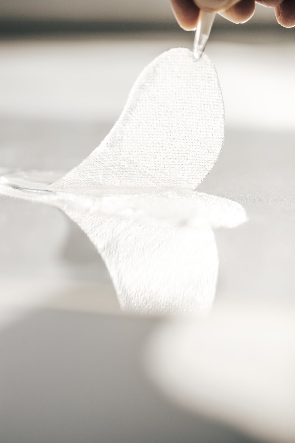 2. 取出眼膜貼於眼下位置,緊貼肌膚